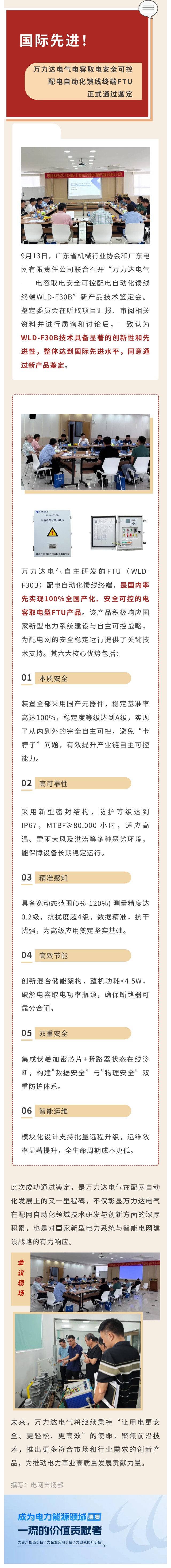 國際先進!萬力達電氣電容取電安全可控配電自動化饋線終端FTU正式通過鑒定!